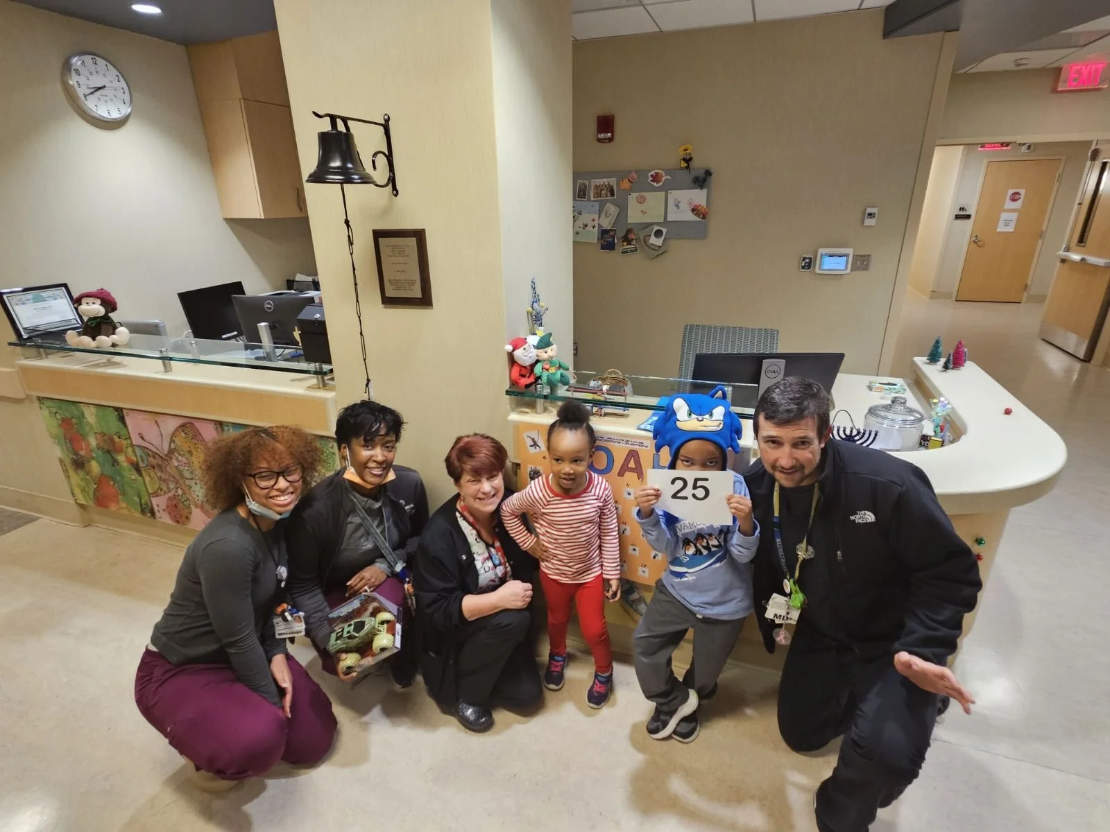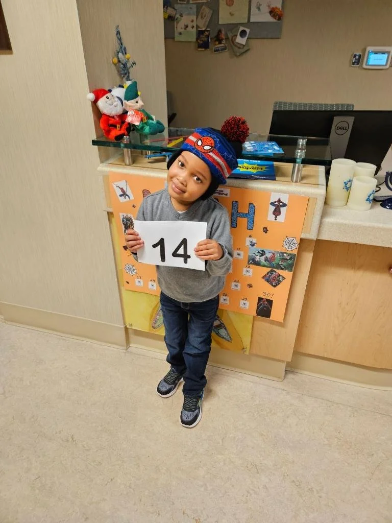 Noah began radiation late November. He rang the bell to signify the end of radiation treatment on January 5, 2024. At 5-years-old, Noah was able to receive his 30 treatments of radiation without sedation and proved to be a champ as he “zapped the bad lump.”